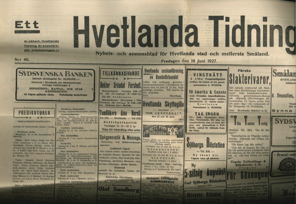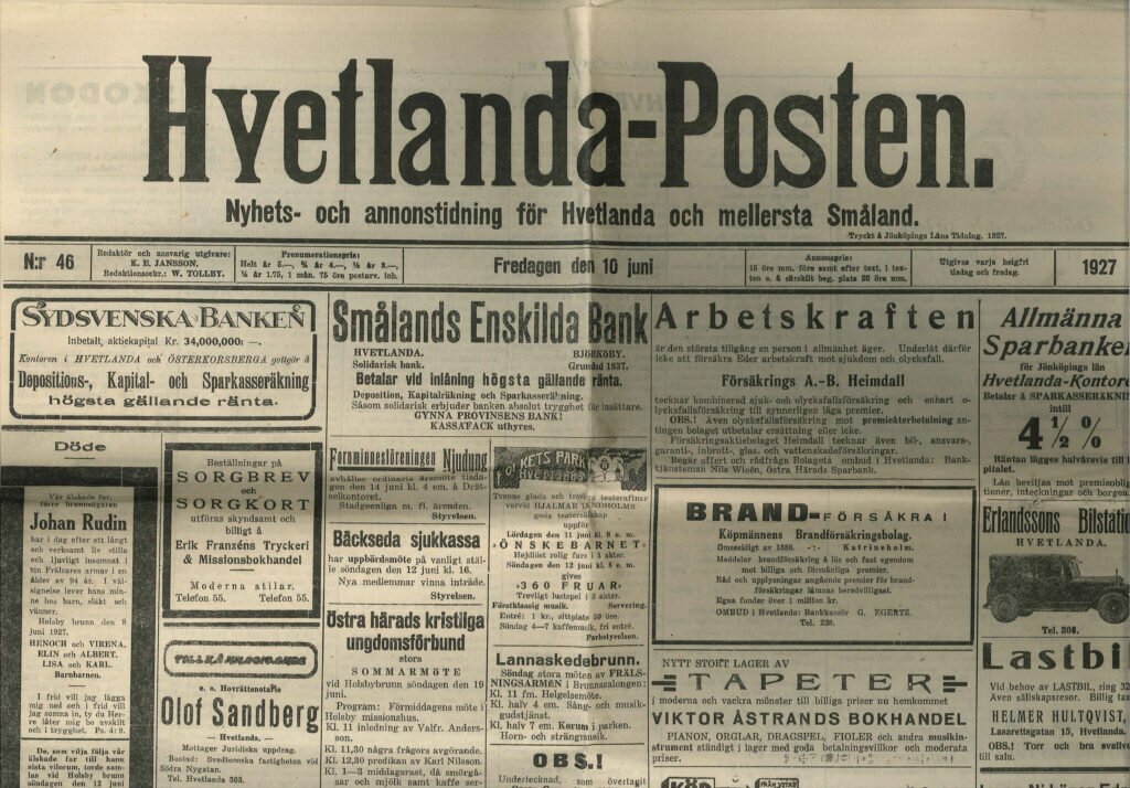 Vidare framgår det av dokumentet att i lådan lades diverse gällande mynt, ett exemplar av Frälsningsarméns publikationer och ett exemplar av Hvetlanda-Posten och Hvetlanda Tidning.