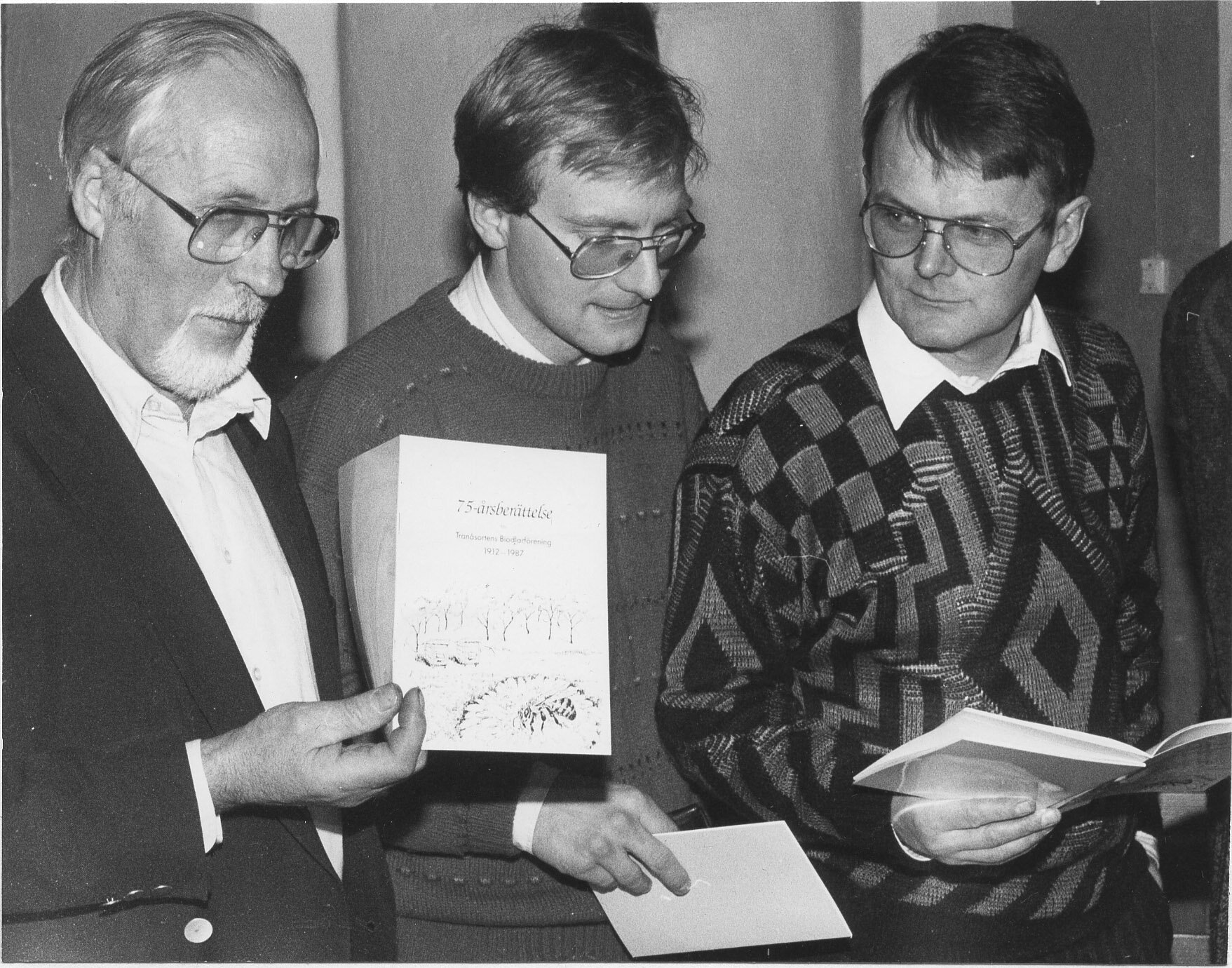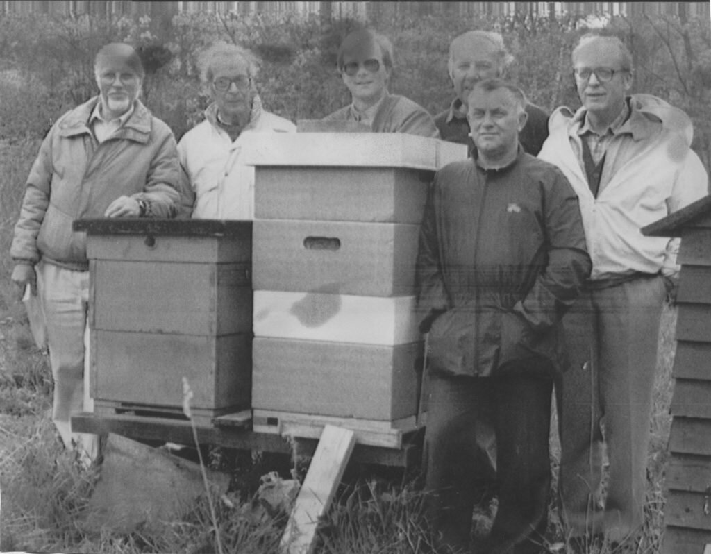 ”År 1912 tillkom denna förening och 17 biskötare lade grunden till den allmännyttiga verksamheten som biodlarna i samarbete med sina bin utfört under de gångna 55 åren. Biodlingen är en stimulerande och fascinerande sysselsättning som människor med fritidsproblem borde pröva, och säkert är att den som en gång fått intresset riktigt väckt för denna så rikt givande fritidssysselsättning förblir biodlare så länge han kan och orkar. Vi får väl tacka de blomtrogna bina för att naturen omkring oss ser ut som den gör, varje växtart fortsätter praktiskt taget sin tillvaro i oförändrat skick, färgnyansen hos blommorna kan genom korsning förändras men arten fortlever. Många fler än som är fallet skulle säkert varit borta om pollinering genom binas medverkan ej skett. Då vi nu ser tillbaka på de år som gått finner vi att växlingar förekommit. Hade föreningen 17 medlemmar vid starten hade den 117 då den var på toppen. Mycket hade då hänt: två världskrig hade rasat med alla de restriktioner som följer med, då förbindelsen med andra länder blir bruten. Sockerransoneringen födde fram biskötare eller riktigare biägare. Många av dessa var inga riktiga biodlare men eliten blev kvar och fortsätter sin utomordentligt fina utövning utan att i första hand tänka på vinsten. Hoppas, mer eller mindre besvikelser och åter hoppas, det är biodlarens växlande men spännande upplevelser. Varje vår hoppas och varje höst summera resultatet, många kg härlig honung har härvid räknats in.
