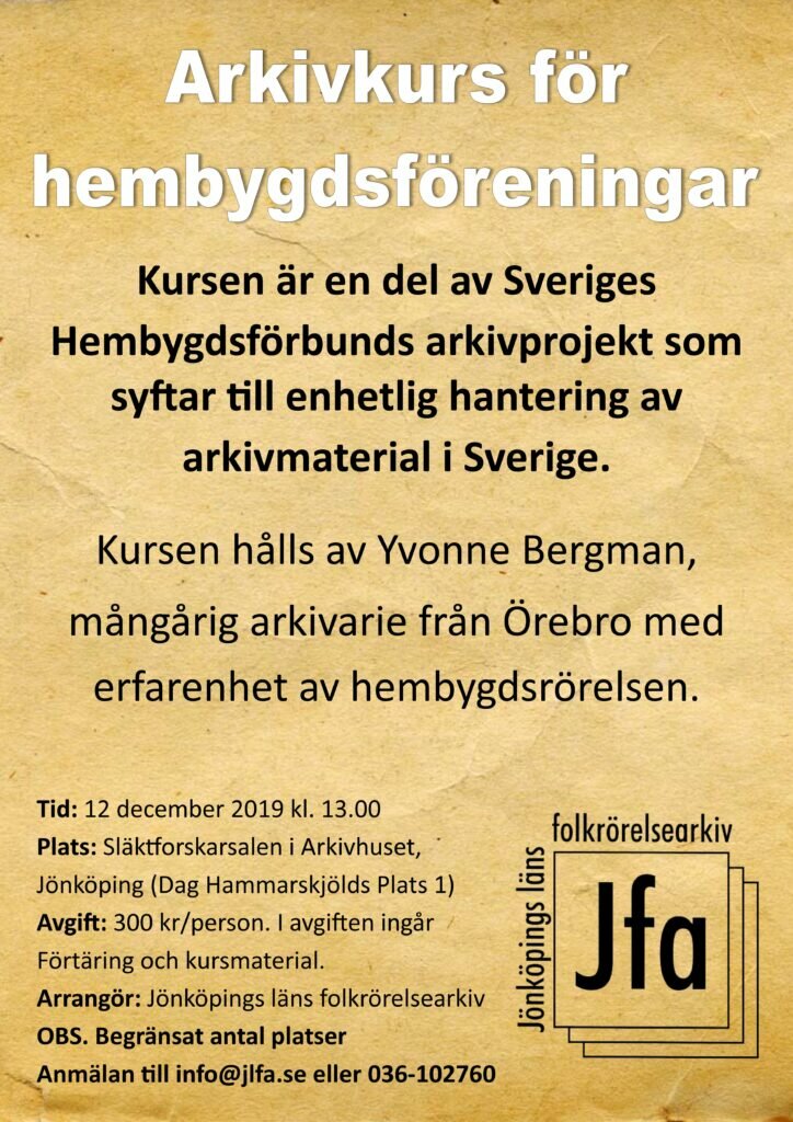 Kursen är en del av Sveriges Hembygdsförbunds arkivprojekt som syftar till enhetlig hantering av arkivmaterial i Sverige.